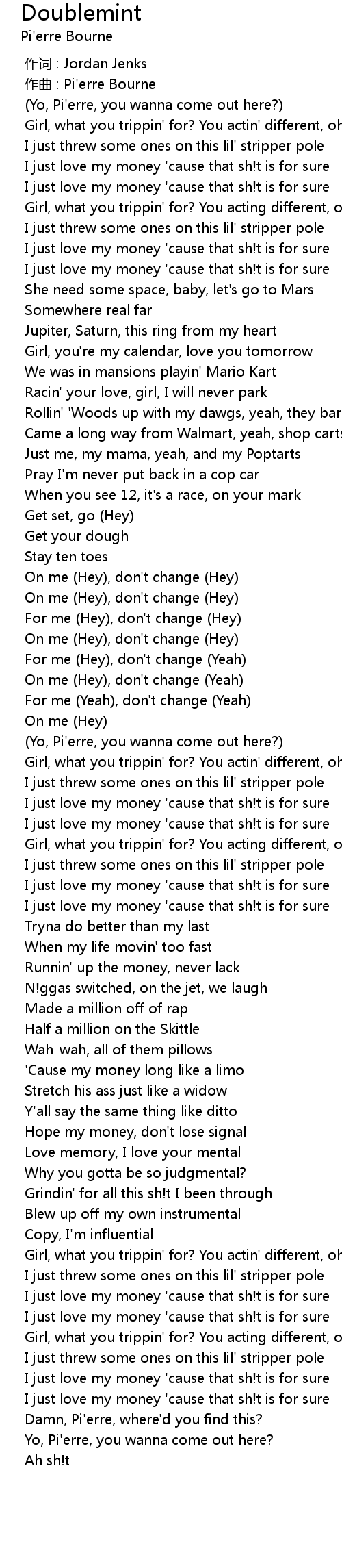 | [00:20.501] | I just love my money 'cause that sh!t is for sure |