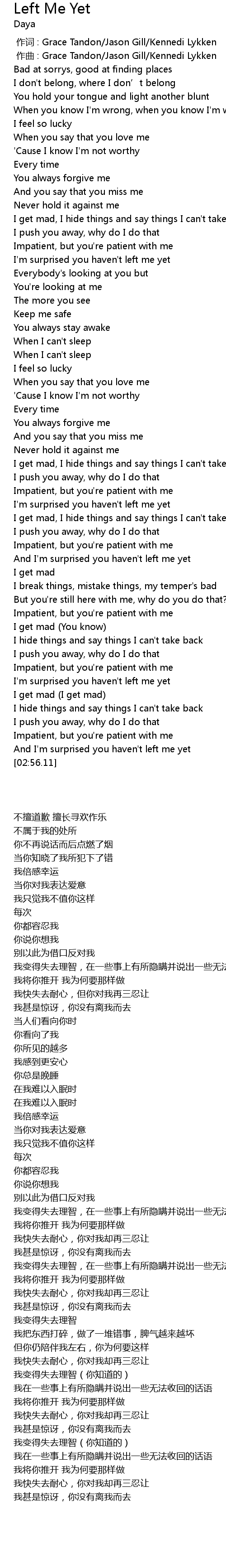 | [02:52.12] | And I' m surprised you haven' t left me yet |