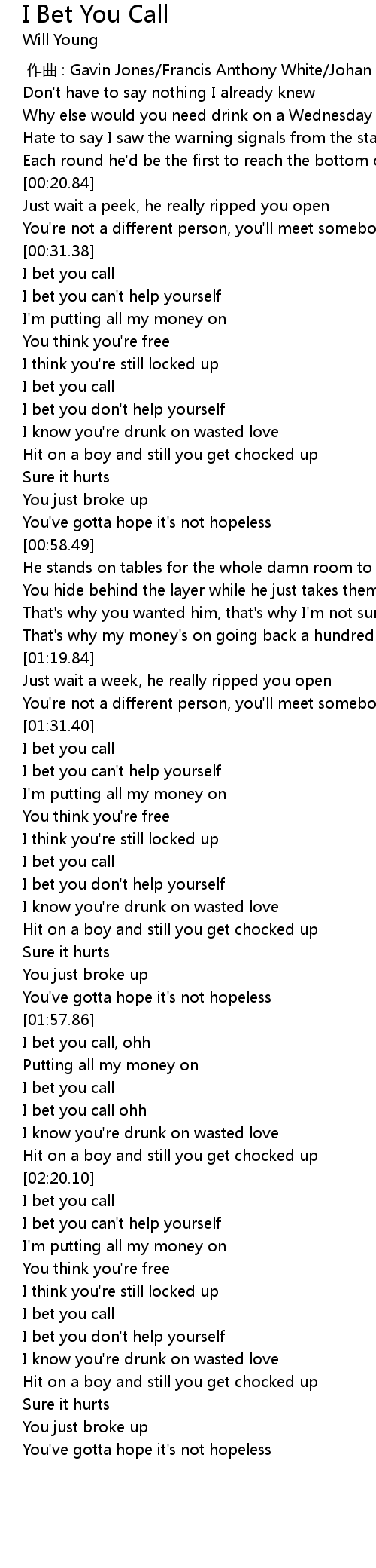 | [01:59.25] | I bet you call, ohh |