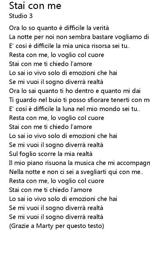 | Stai con me ti chiedo l' amore | |