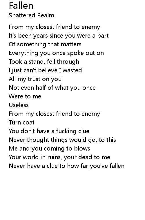 | Never have a clue to how far you've fallen |