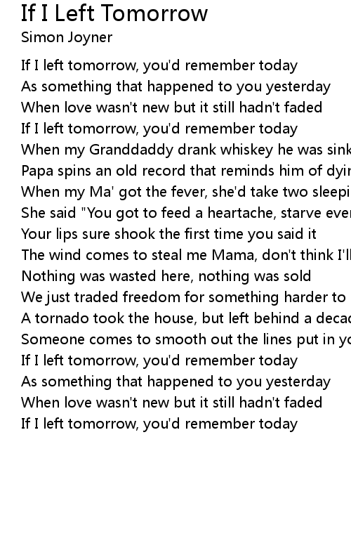 If I left tomorrow, you'd remember today |