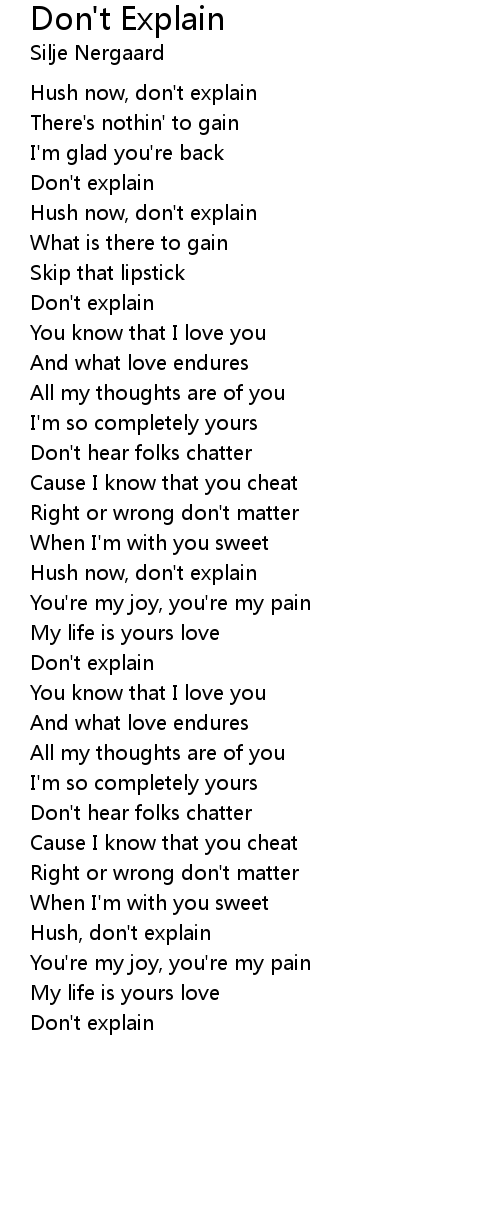 Hush now, don't explain |