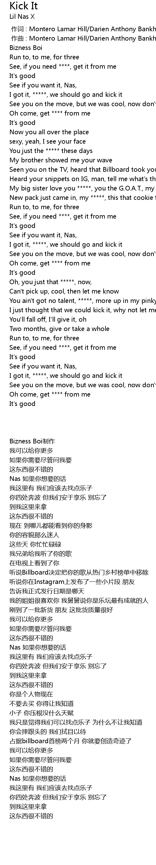 | [00:25.47] | I got it, *****, we should go and kick it |