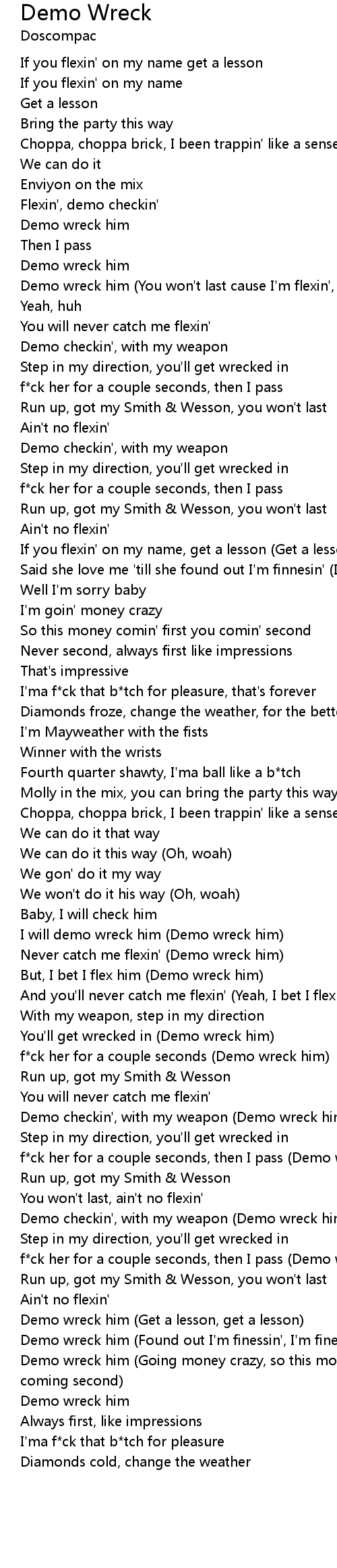 | [01:51.818] | Never catch me flexin' (Demo wreck him) |