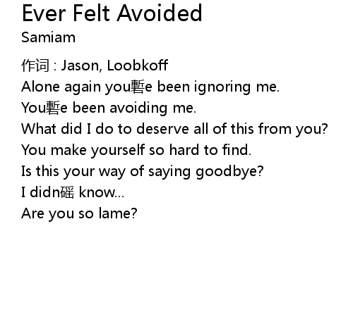 | Alone again you chan e been ignoring me. | |