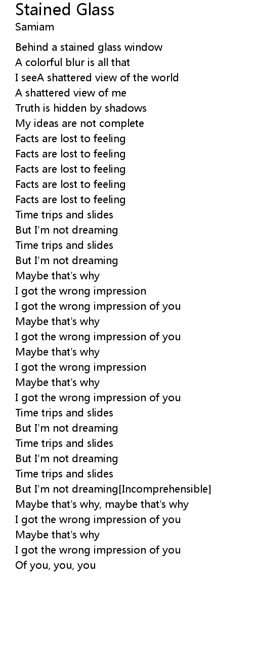 | Behind a stained glass window | |