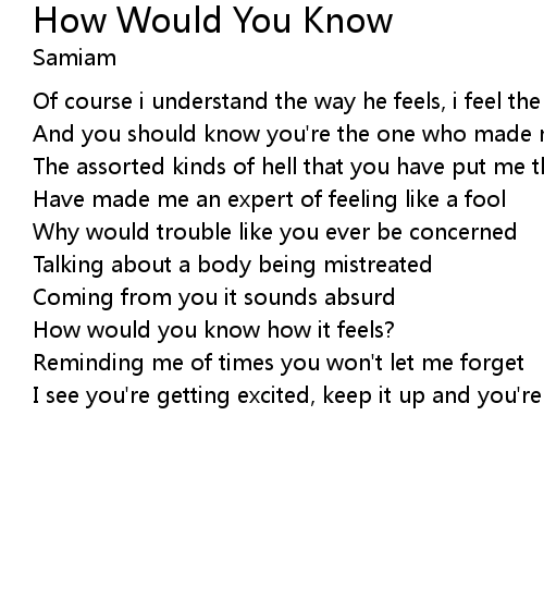 | How would you know how it feels? | |