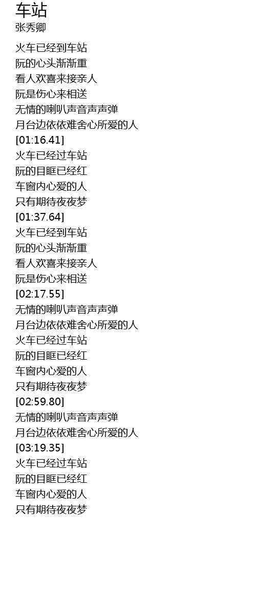 | [03:20.77] | huǒ chē yǐ jīng guò chē zhàn |
