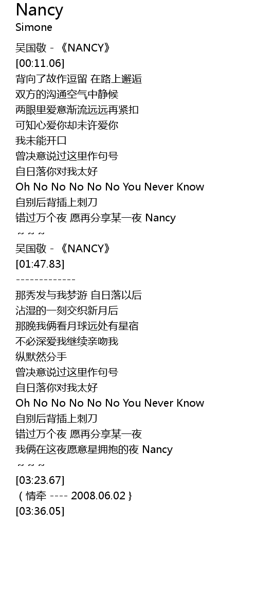 | [01:39.55] | 吴国敬 - 《NANCY》 |