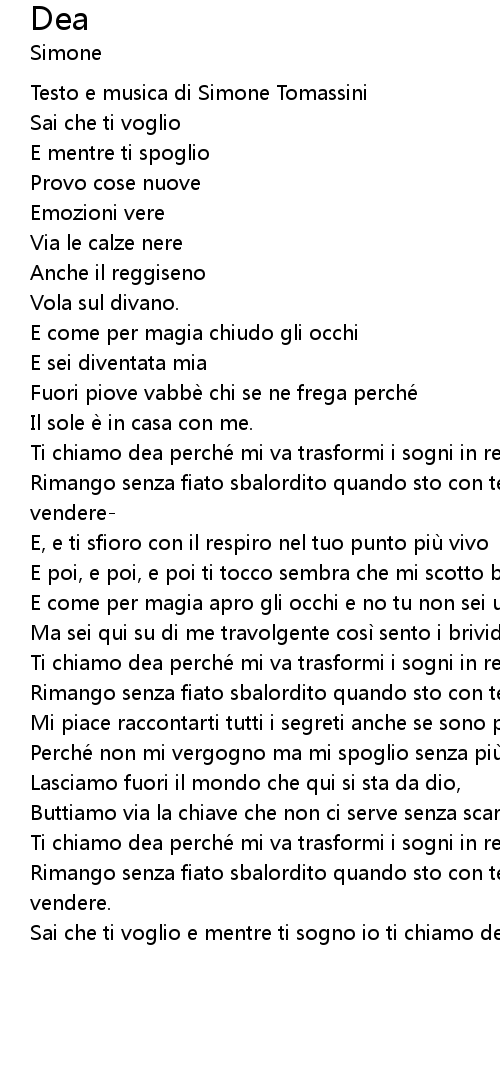 | Sai che ti voglio e mentre ti sogno io ti chiamo dea. |