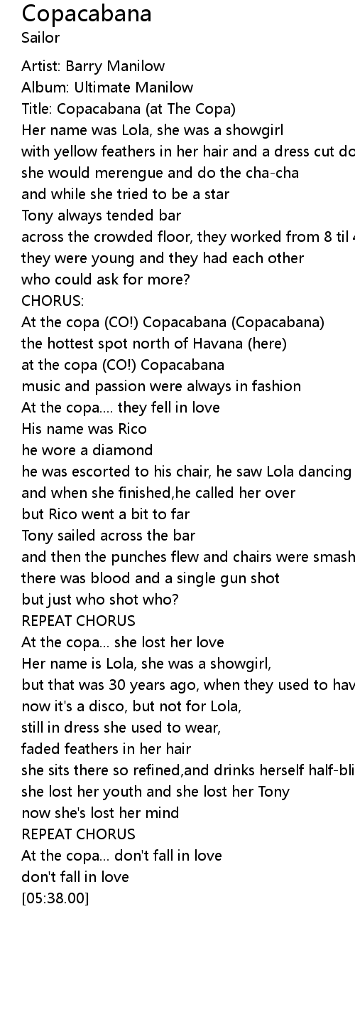 [01:54.38] At the copa (CO!) Copacabana (Copacabana)