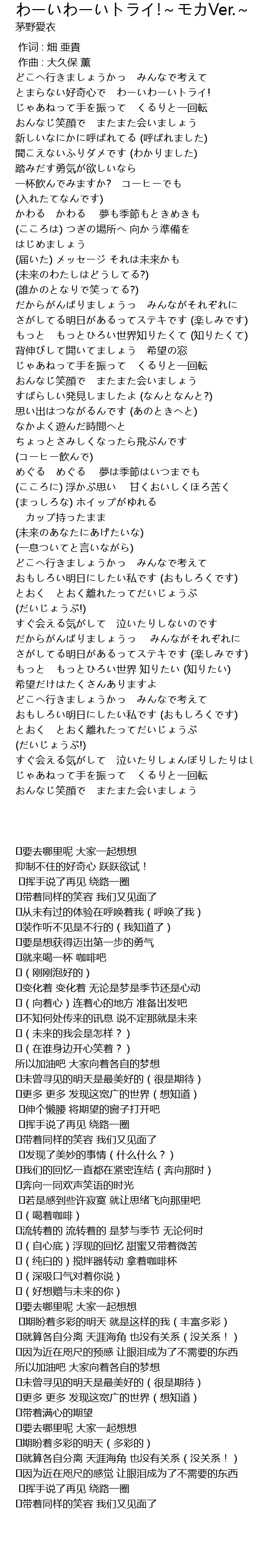| 歌曲 | わーいわーいトライ!~モカVer.~ |