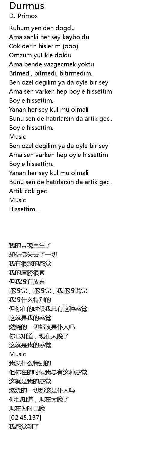 | [00:38.385] | Bitmedi, bitmedi, bitirmedim.. |