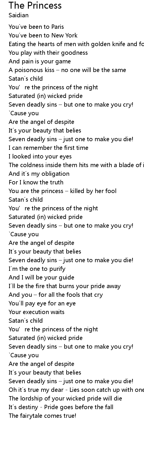 | You’re the princess of the night | |