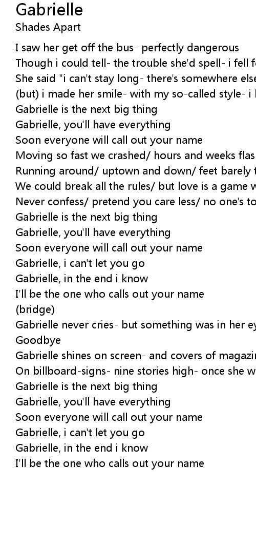 Though i could tell- the trouble she'd spell- i fell for gabrielle