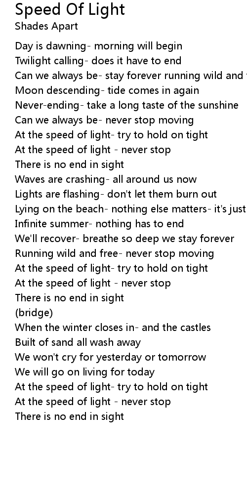 At the speed of light - never stop |