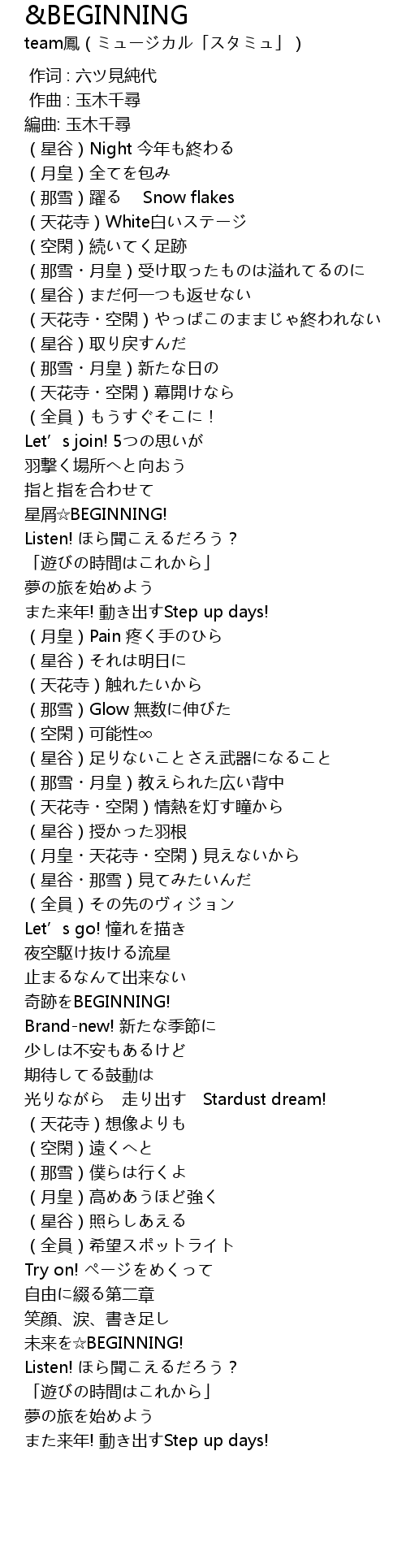 | 歌手 | team鳳(ミュージカル「スタミュ」) |