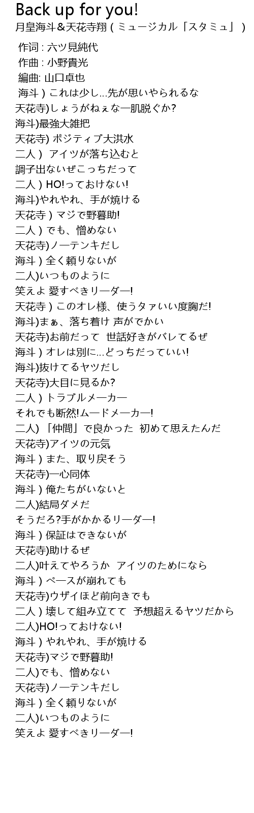 | 歌手 | 月皇海斗&天花寺翔(ミュージカル「スタミュ」) |
