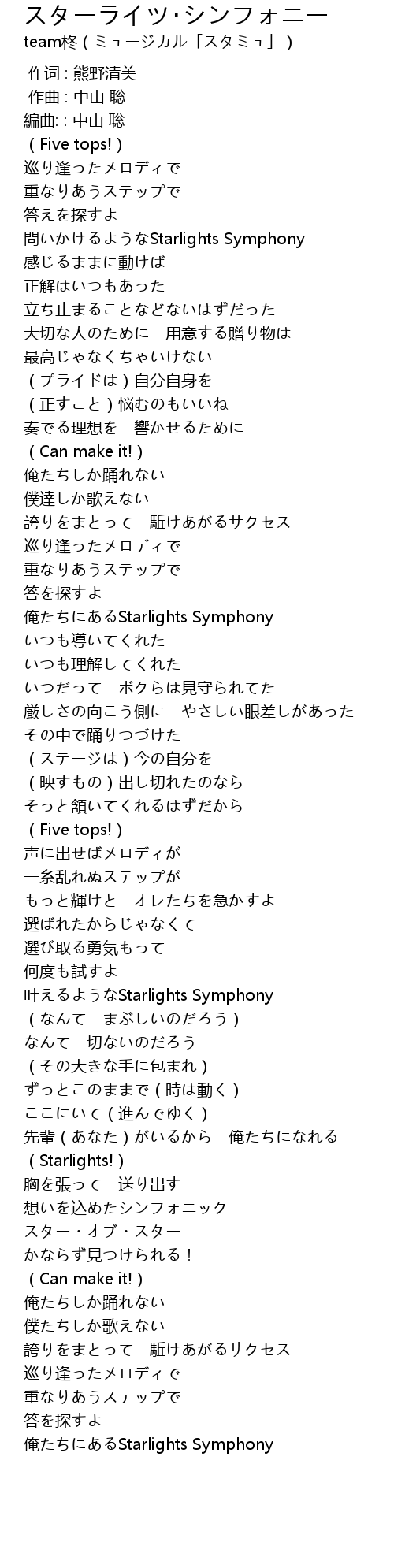 | [04:32.0] | 俺たちにあるStarlights Symphony |