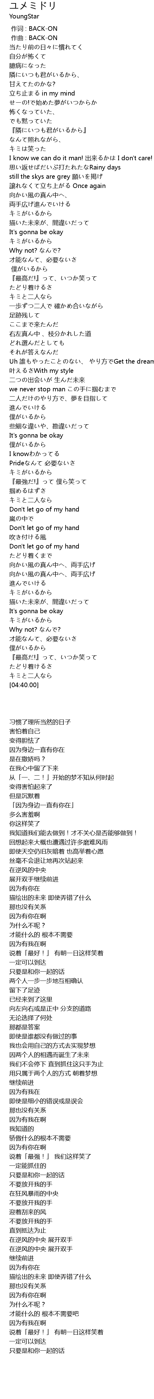 | [02:19.74] | 二人だけのやり方で、夢を目指して |