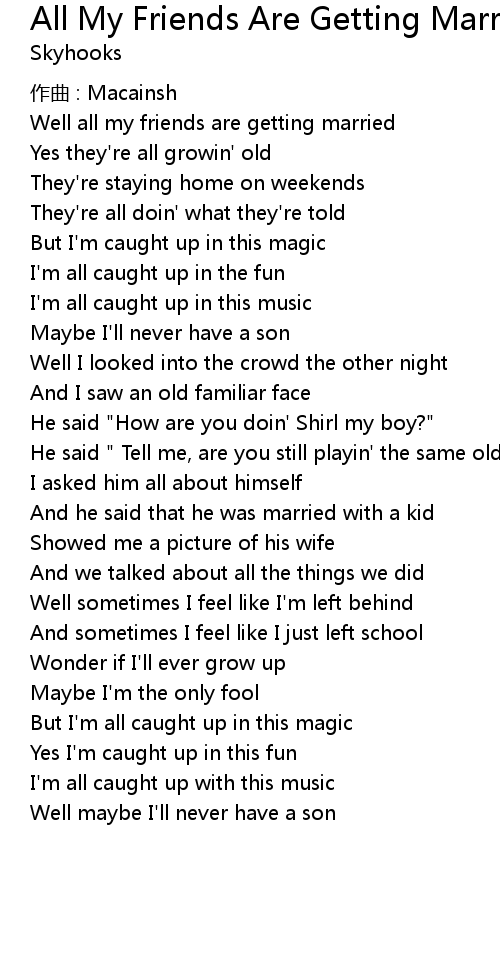 | 歌曲 | All My Friends Are Getting Married |