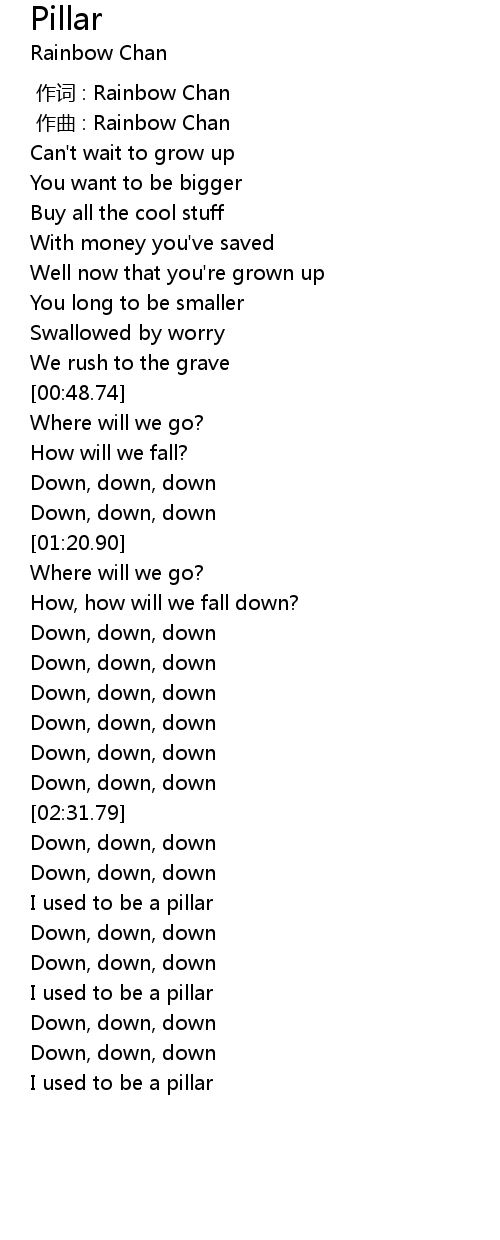 | [01:15.96] | Down, down, down |