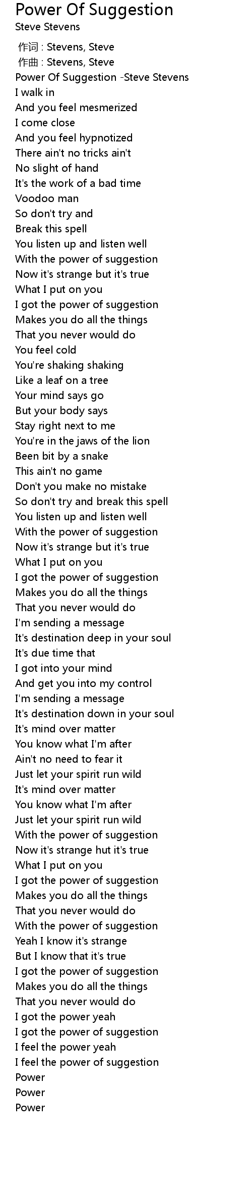 | [00:01.139] | Power Of Suggestion -Steve Stevens |