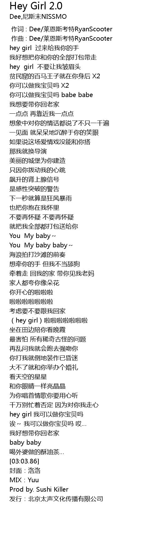 | [02:39.75] | hey girl 我可以做你宝贝吗 |