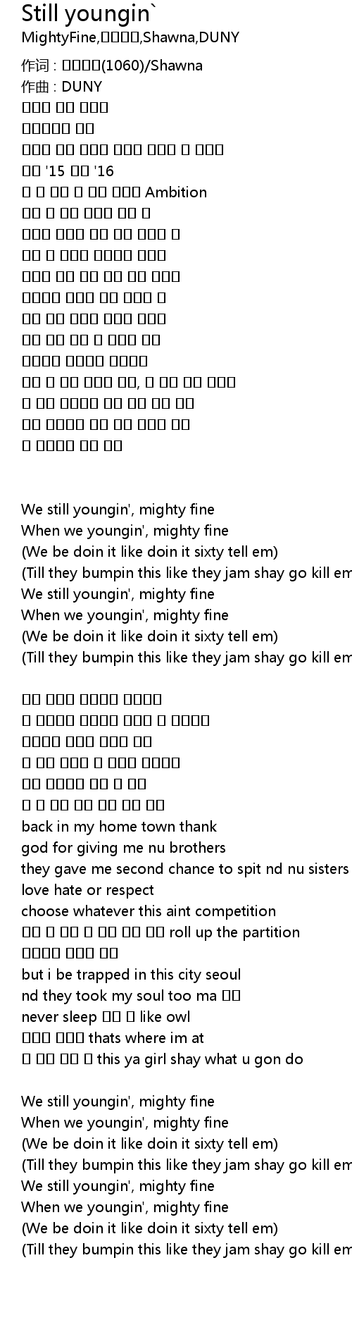 | 歌曲 | Still youngin` |