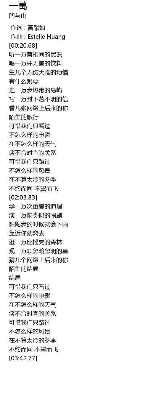 | [00:00.00] | 作词 : 黃韻如 |