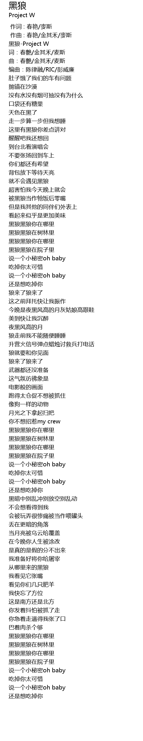 | [03:10.599] | 黑狼黑狼你在哪里 |