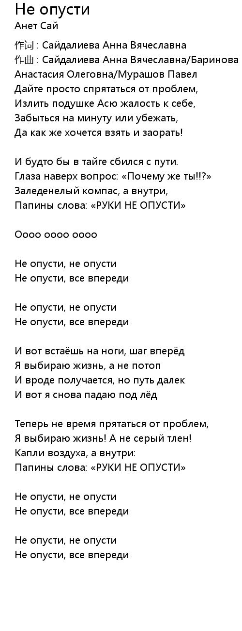 作词 : Сайдалиева Анна Вячеславна |