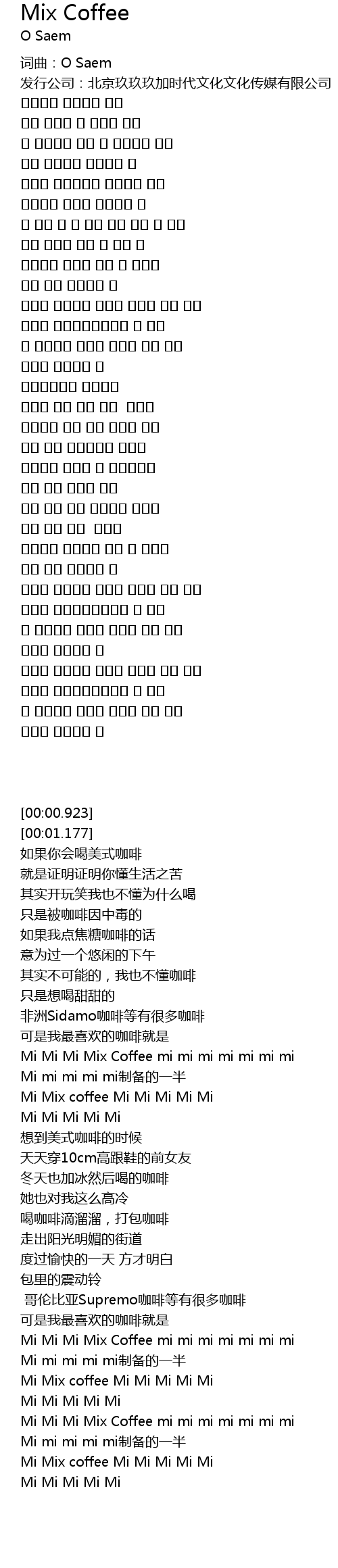 | [00:38.221] | Mi Mi Mi Mix Coffee mi mi mi mi mi mi mi |