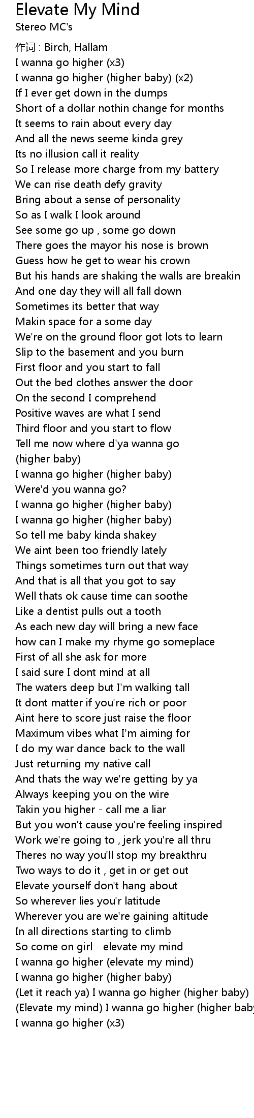 | (Elevate my mind) I wanna go higher (higher baby) | |