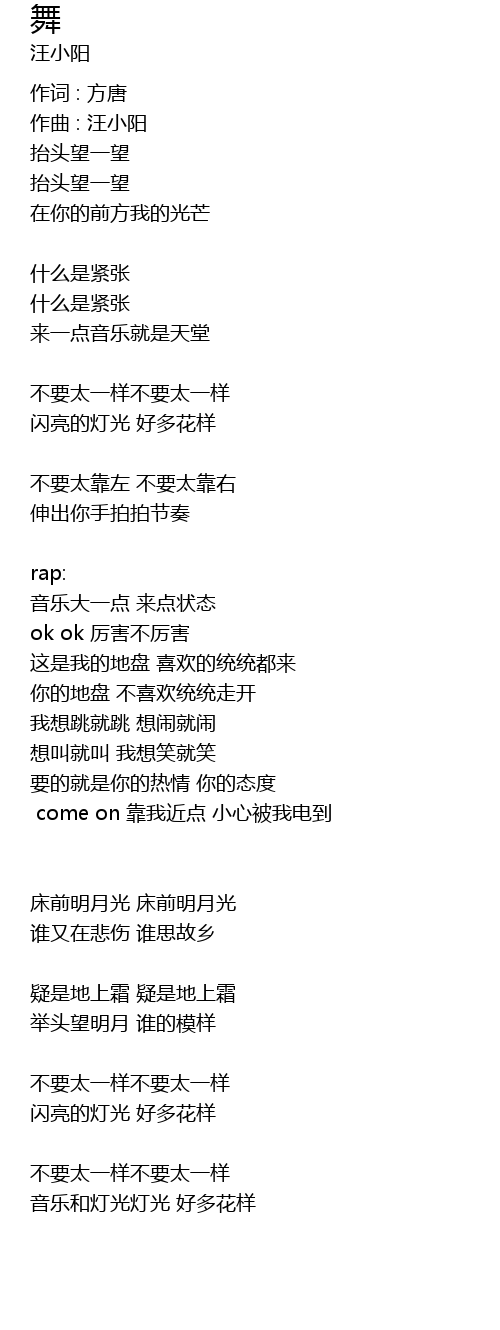 | 歌曲 | 舞 |
