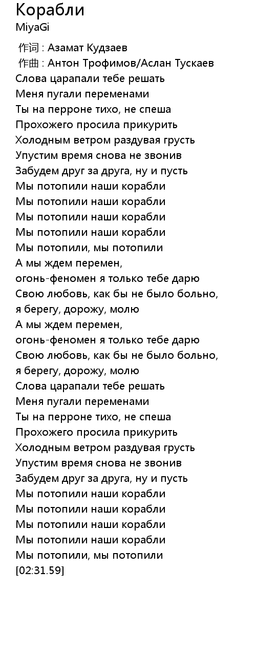 Корабли 歌词