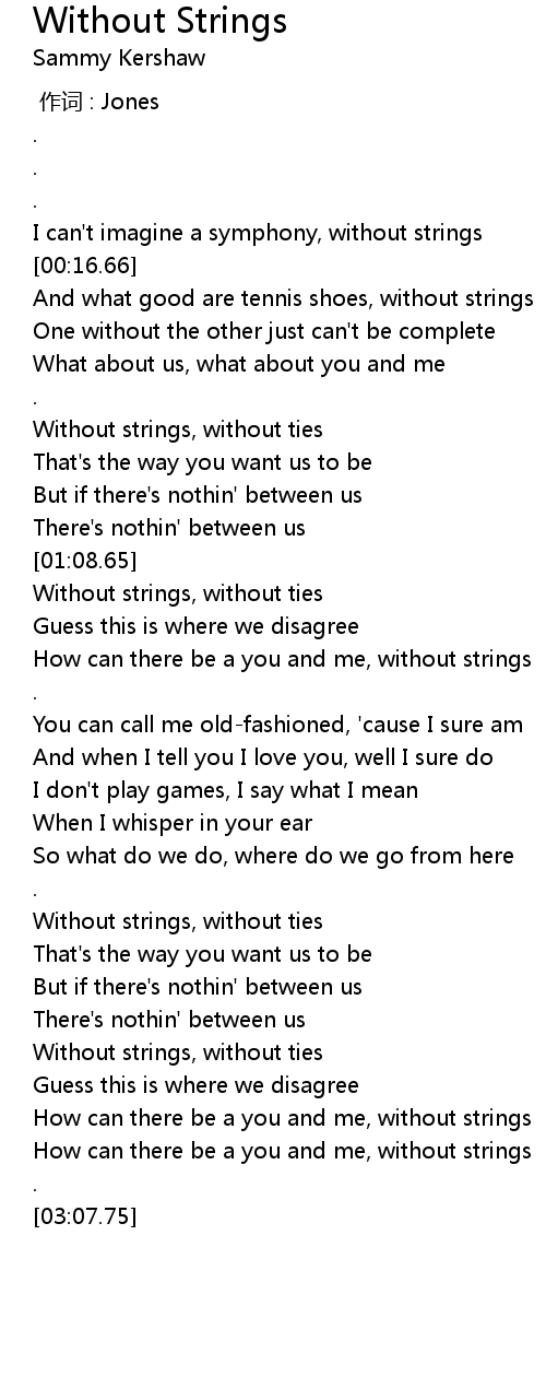 | [00:11.16] | I can't imagine a symphony, without strings |