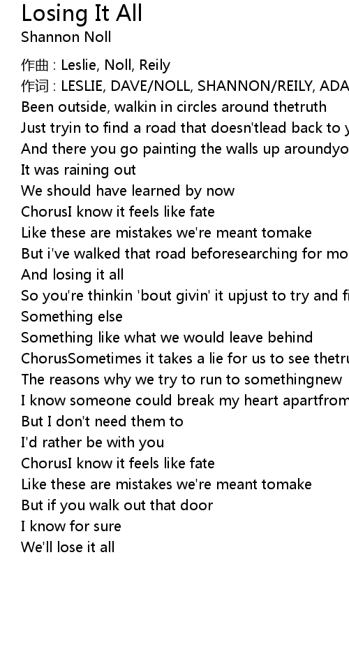 | 作词 : LESLIE, DAVE/NOLL, SHANNON/REILY, ADAM | |