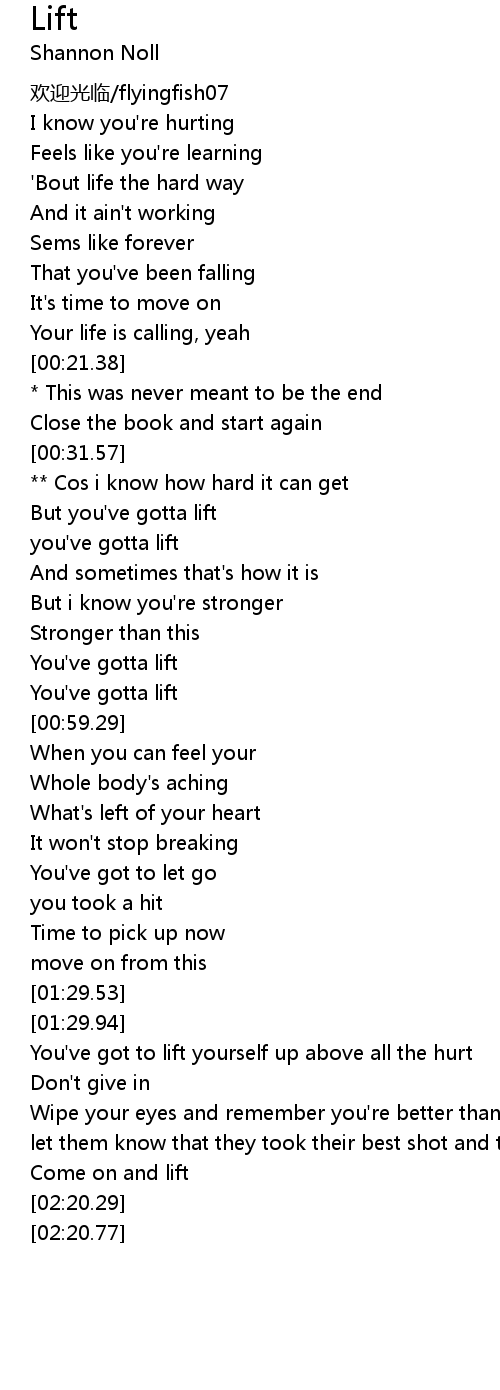 | [01:59.62] | You've got to lift yourself up above all the hurt |