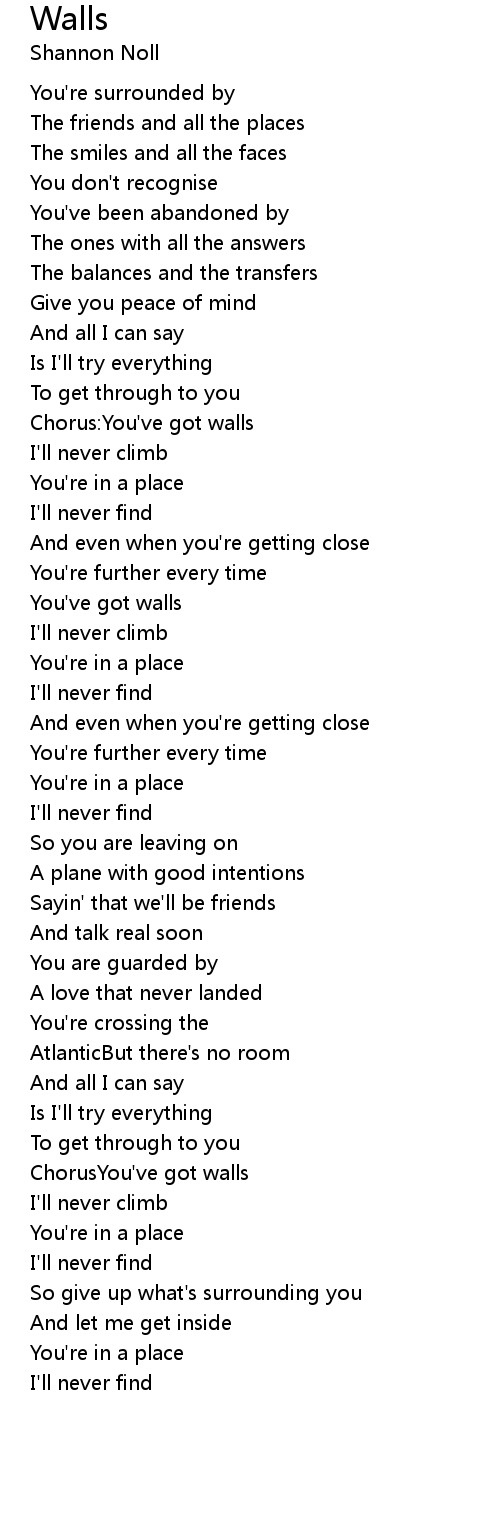 Chorus:You've got walls |