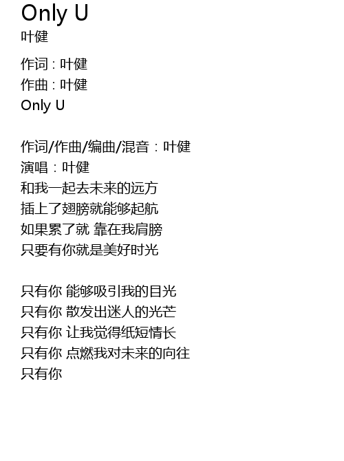 | 作词/作曲/编曲/混音:叶健 | |