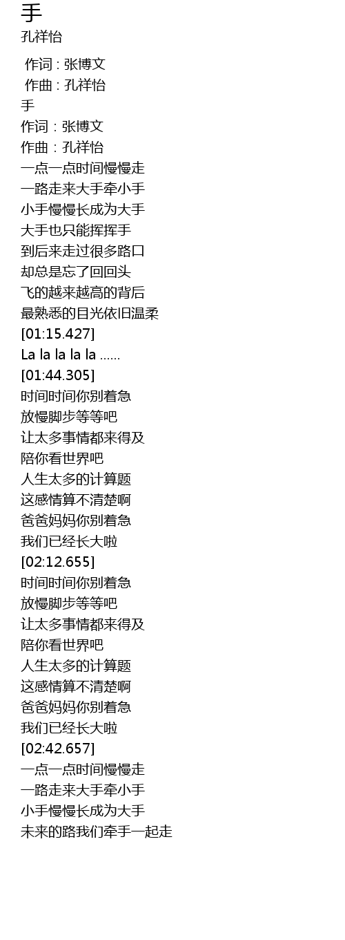 | [03:01.408] | xiǎo shǒu màn màn cháng chéng wéi dà shǒu |