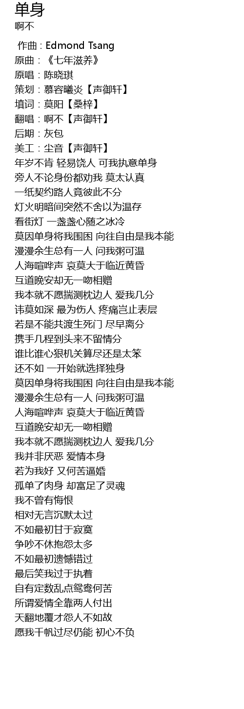 | [00:01.476] | 翻唱:啊不【声御轩】 |