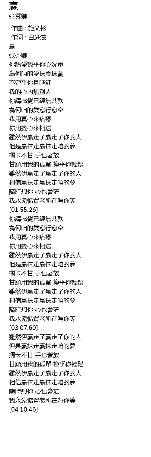 | [03:24.98] | 雖然伊贏走了贏走了你的人 |