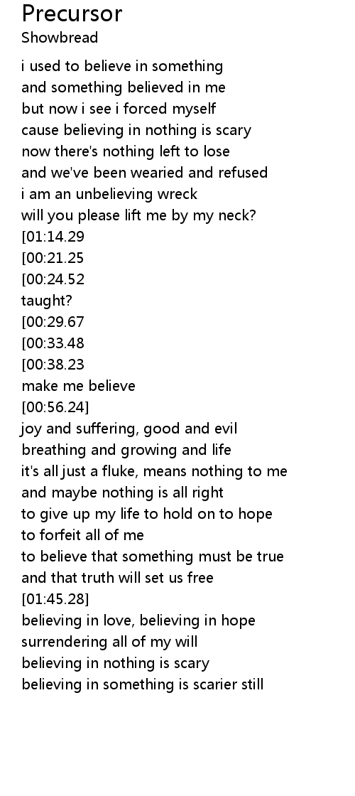 [01:14.77][00:21.25] how do i turn this into something i believe
