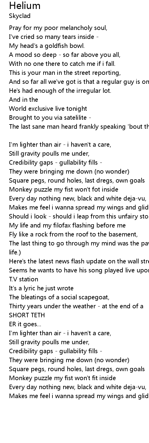 I'm lighter than air - i haven't a care, |
