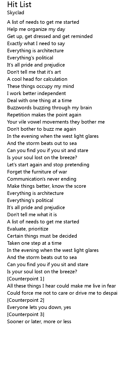 Hit List 歌词