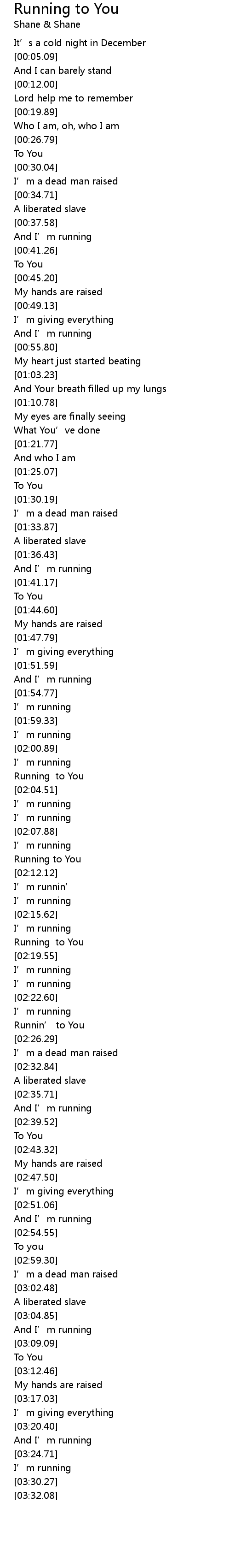 | [02:10.37] | Running to You |