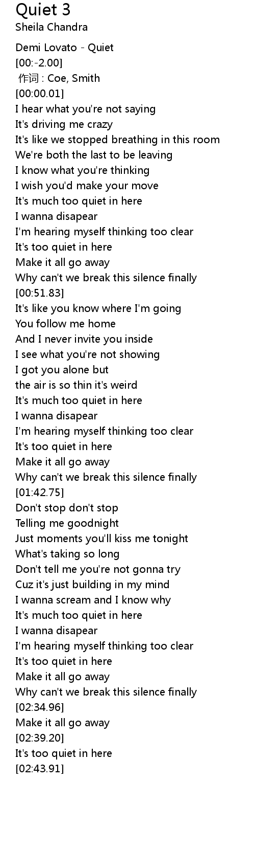 | [02:12.88] | I'm hearing myself thinking too clear |